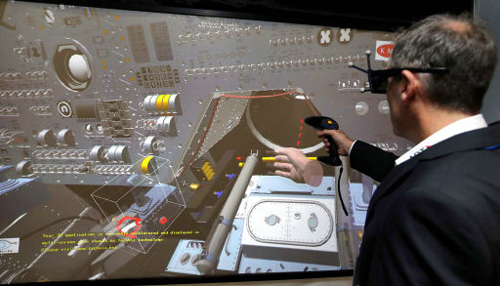 | 12일 대전 컨벤션센터에서 열린 제6회 M&S(무기체계 획득을 위한 모델링 및 시뮬레이션) 학술대회를 찾은 방산업체 관계자가 행사장에 전시된 첨단 장비들을 체험해보고 있다. 대전=연합뉴스 |