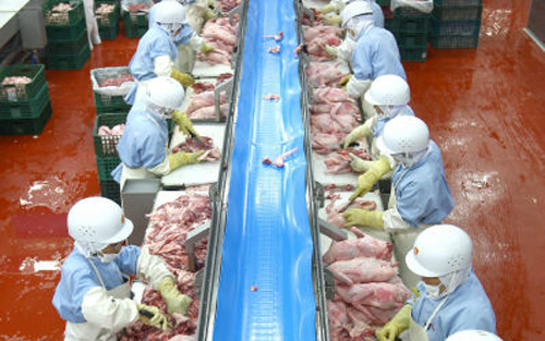 | 지난 22일 전남 장흥군 장흥읍 ㈜다솔 오리 가공 라인에서 직원들이 생오리를 손질하고 있다. |