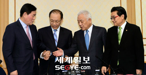 새누리당 유일호, 민주당 김관영 대변인은 “현 정국 상황에 대한 허심탄회한 대화를 나눴다”고 전했지만, 회담장에는 시작부터 팽팽한 긴장감이 감돌았다.