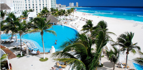 눈부신 에메랄드 해변을 따라 르블랑, 하드락, 썬팔레스, 하얏트, 메리어트, 리츠칼튼 등 160 여개의 세계 유수의 리조트 호텔이 늘어 서 있는 칸쿤의 호텔존(Zona Hotelera)은 무려 22km로 미국의 라스베이거스와 하와이의 와이키키를 합쳐 놓은 것 같은 장관을 연출한다.