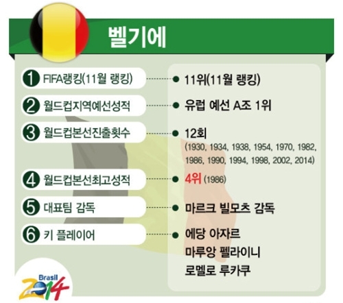 한국과 2014 브라질 월드컵 H조 최종 3차전에서 맞붙게 될 벨기에는 유럽의 강호로 꼽히는 나라다.