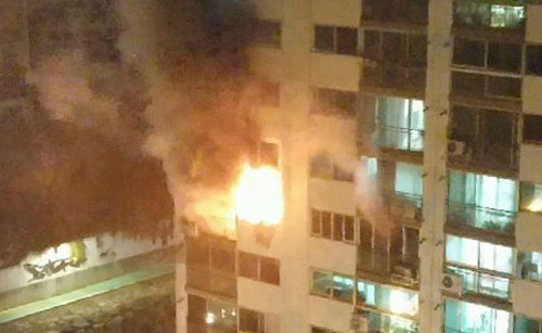 | 불길 치솟는 아파트 11일 오후 9시35분께 부산 북구 화명동의 한 아파트 7층에서 불길이 치솟고 있다. 이 화재로 홍모(34·여)씨와 홍씨의 어린 아이 3명이 숨져 주위를 안타깝게 하고있다. <연합> |