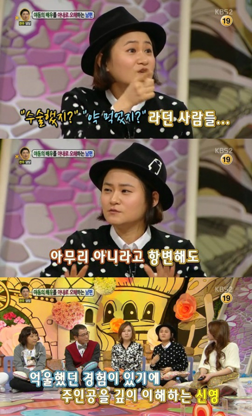 지난 16일 오후 방송된 KBS 2TV ‘대국민 토크쇼 안녕하세요’에서는 김신영이 출연해 자신을 야동배우로 오해해 억울하다는 여성의 사연을 들었다.