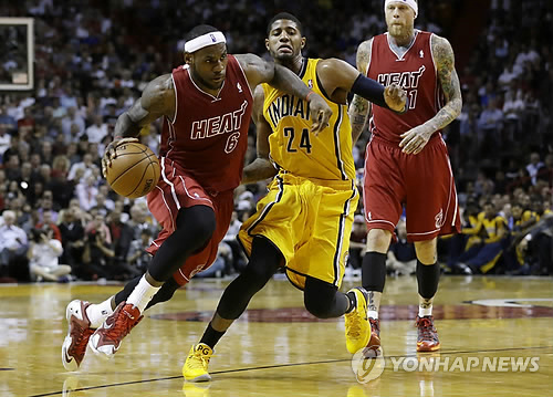 마이애미는 19일(이하 한국시간) 미국 플로리다주 아메리칸 에어라인스 센터에서 열린 인디애나 페이서스와의 경기에서 르브론 제임스가 24점, 드웨인 웨이드가 32점을 쏟아부어 97-94로 이겼다.