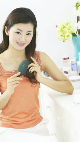 | 머리를 말릴 때 마구 비비는 것은 금물이며 젖은 상태에서 빗질할 때는 에센스 등을 발라주는 게 좋다. 애경 제공 |