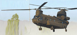 앞뒤로 돌아가는 커다란 3엽 로터를 가진 치누크는 큰 동체와 3700마력짜리 엔진 2개 덕분에 많은 병력과 물자, 심지어 지프 같은 차량도 최대 500㎞까지 수송할 수 있다. 155㎜포를 동체 아래에 매달고도 포탄과 포병들을 추가로 태울 수 있어 경우에 따라서는 자주포보다 더 빨리 움직이는 것도 가능하다.