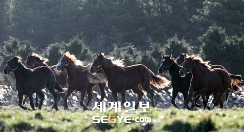 | 새 희망 향해 달리자 31일 제주시 조천읍의 한국마사회 제주경주마육성목장 초지를 예비 경주마들이 갈기를 휘날리며 내달리고 있다. 2014년 새해는 저 말들처럼 우리 모두가 희망찬 미래를 향해 질주하는 한 해가 되기를 소원한다. 제주=이제원 기자 |