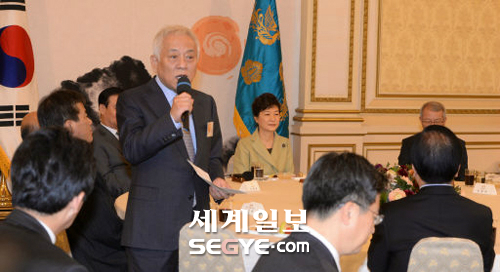 박 대통령은 “경제계는 과감한 혁신과 투자로 일자리를 창출하고 국제경쟁력을 더욱 높여 국민소득 4만불 시대를 앞당겨야 한다”고 당부했다. 남북 관계에 대해선 “올해는 60년 만에 돌아온 청마의 해다. 이 소중한 해에 우리는 불안과 분단의 고통이 지속되고 있는 한반도에 평화를 구축해 통일시대를 열어갈 수 있도록 해야 할 것”이라고 주문했다.