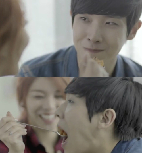 아이돌그룹 엠블랙의 이준이 가수 에일리의 신곡 ‘노래가 늘었어’ 뮤직비디오에서 김치복음밥 먹방을 선보였다.