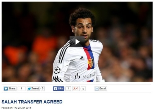 구단은 "첼시와 FC바젤 양 측이 21세 공격형 미드필더 모하메드 살라의 이적에 합의했다"며 "곧 개인 합의와 메디컬 테스트가 진행될 것"이라고 전했다.