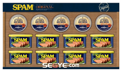 선물세트들 중에서 늘 판매 상위권에 오르는 품목이 있으니, 바로 ‘스팸’이다. 푸른색과 노란색 캔에 들어있는 햄고기인 스팸은 원산지인 미국에서는 집안의 식품저장고에 보관되는 질 낮은 식품이지만 한국에선 ‘귀하신 몸’이다.