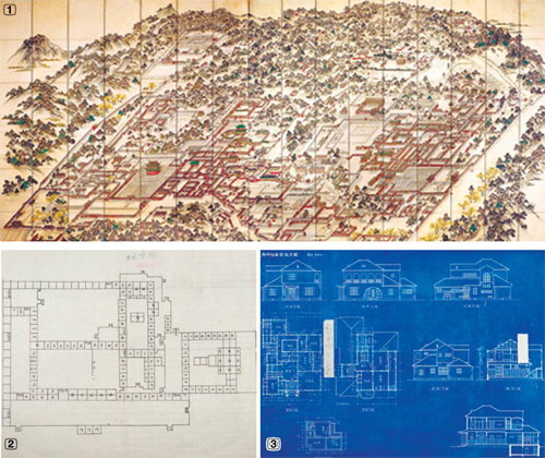 | 전통적인 왕실 건축 도면은 대체로 건물의 전체적인 배치를 보여주는 형태가 많다. 창경궁, 창덕궁 전체를 조감한 동궐도(①) 같은 형식이 도면으로 표현된 것으로 이해하면 된다. 5일 국립문화재연구소가 공개한 도면에는 이와 달리 ‘창경궁 통화전 도형(②)’처럼 특정 건물의 모습을 표현했다. 평면적인 형태를 띠던 도면은 일제 강점기에 들어 근대적인 건축기술이 도입되면서 ‘이우공가 이강공가 어별저 신축설계도(③)’처럼 입체적인 형식으로 바뀌어 갔다. 국립문화재연구소 제공·세계일보 자료사진 |