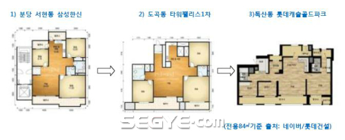 인근 노후 아파트와 비교하면 차이는 확연해진다. 2000년 입주한 시흥동 벽산아파트 전용 84.99㎡는 21.4㎡, 2004년 입주한 독산동 중앙하이츠 전용 84.87㎡는 29.1㎡의 서비스면적에 불과해 실사용 면적은 최근 분양한 아파트와 큰 차이를 보인다.