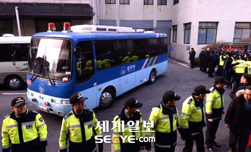 | 17일 경기 수원시 영통구 수원지법에서 내란 음모 혐의 등으로 기소된 통합진보당 이석기 의원에 대한 선고공판이 끝난 뒤 이 의원 등을 태운 호송차가 법원을 빠져나가고 있다. 수원=허정호 기자 |