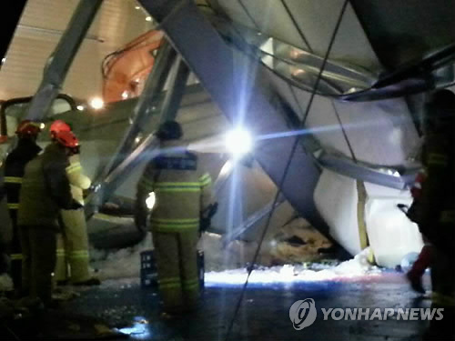 부서진 샌드위치 패널 철골 구조물이 켜켜이 쌓여 있어 잔해들을 치우고 매몰자를 다 찾기까지는 상당한 시간이 걸릴 것으로 보인다.