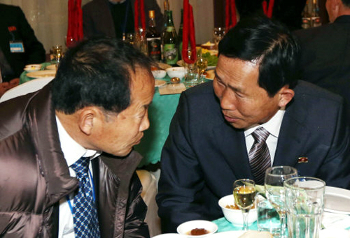 박양수씨는 훈장 등을 꺼내보이며 “나도 당의 배려를 받고 이렇게 잘 산다”면서 “빨리 통일이 돼야지…자주 만나자”고 말했다. 최영철씨도 “(김정은) 원수님 덕에 만났다”, “서로가 비방중상하지 말고 민족단합해서 통일해야 한다”고 강조했다.