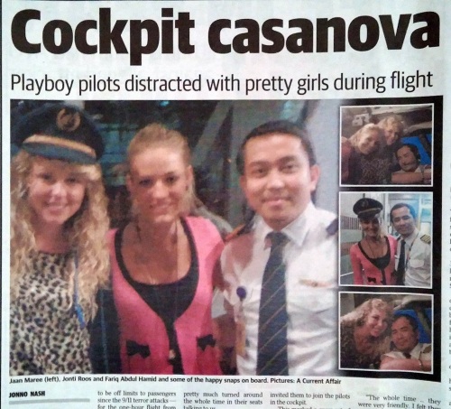 최근 호주의 한 방송 프로그램에 출연한 여성이 과거 파리크 압둘 하미드 부기장에게 이끌려 비행 중인 여객기 조종실에 들어갔던 사실을 털어놓은 것과 관련, 말레이시아항공이 당혹감을 감추지 못하고 있다. 하미드 부기장은 이번에 실종된 말레이시아항공 여객기 운항을 담당했다.