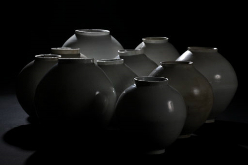 전시실 한쪽에 하얗고 둥근달이 떴다. 한 개가 아니다. 10여개의 달이 한꺼번에 떴다. 온화한 빛깔에 넉넉한 몸매가 한국인의 인심을 보는 듯하다. ‘달항아리’라 불리는 원호(圓壺)를 보니 이런 생각이 든다. 다른 한쪽에는 빛깔은 비슷한데, 어깨가 당당하고 아래쪽으로 가면서 가늘어지는 모양의 입호(立壺)가 전시장을 채웠다. 굳건하게 버티고 선 모습이 강인한 인상의 남성을 연상시킨다. 백자 항아리 하면 달항아리를 떠올리지만 그와는 다른 매력이 넘친다.