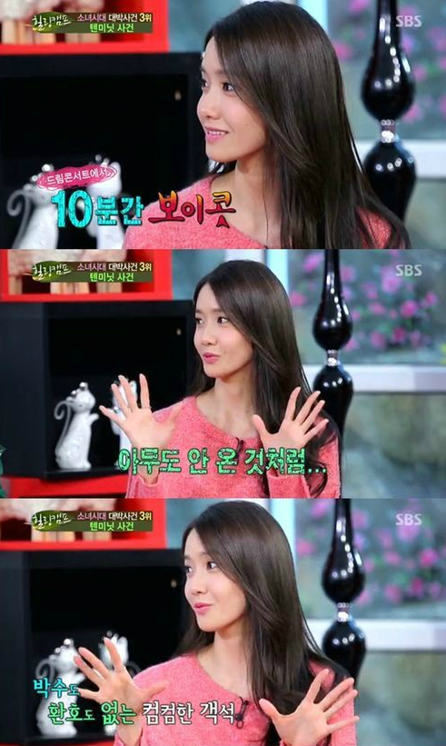 이날 방송에서 소녀시대 멤버들은 지금까지 있었던 ‘5대 사건’을 공개했다. 그러던 중 윤아는 “과거 드림콘서트 무대에 오른 적 있다”며 “그런데 10분 동안 아무도 박수도 치지 않고 환호도 하지 않아 컴컴한 객석을 바라보며 노래를 불렀다”고 말했다.