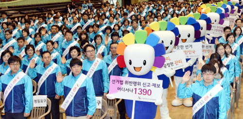 | 6·4지방선거가 두 달 앞으로 다가오면서 선거 판세와 출마 후보자별 지지율 등에 대한 각종 여론조사 결과가 보도되고 있지만, 신뢰도가 낮은 여론조사도 적지 않아 유권자들의 혼란을 부추기고 있다는 지적이 제기된다. 1일 서울 송파구 잠실 실내체육관에서 열린 전국동시 지방선거 공정선거지원단 발대식에서 참석자들은 엄정중립의 자세로 공정하게 선거를 관리할 것을 결의했다. 세계일보 자료사진 |