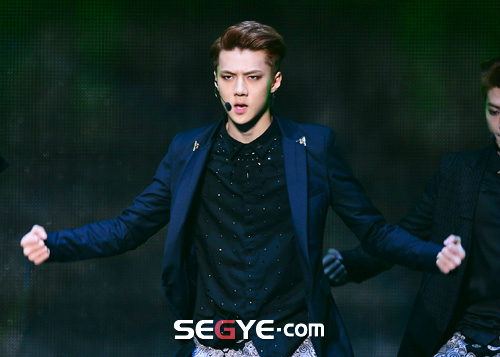 그룹 엑소가 15일 오후 서울 잠실동 잠실 실내체육관에서 열린 '엑소(EXO)의 컴백쇼'에 참석해 공연을 펼치고 있다.