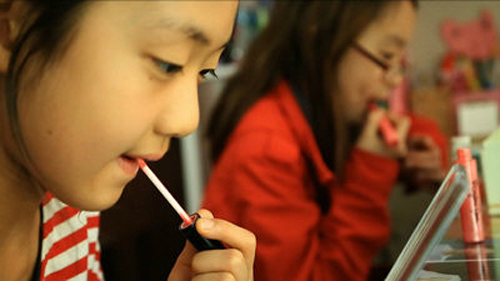 | 화장을 하고 있는 아이들. 많은 화학물질과 중금속을 함유하고 있는 화장품은 아이들에게 치명적인 ‘독’이 될 수도 있다. EBS 제공 |