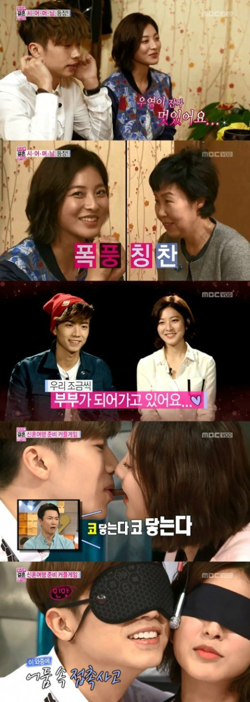 또한 우영과 세영은 신혼여행을 앞두고 남궁민 홍진영 커플과 게임을 했다. 좋은 미션은 갖고, 안 좋은 미션은 넘기고 싶은 두 커플의 신경전이 팽팽하게 펼쳐졌다. 무엇보다 커플 게임은 스킨십의 강도가 남달랐다. 빼빼로 게임, 볼의 촉감으로 물건 맞추기, 면적을 좁히는 신문지 위에서 버티기 등, 스킨십을 할 수 밖에 없는 게임들이었다.