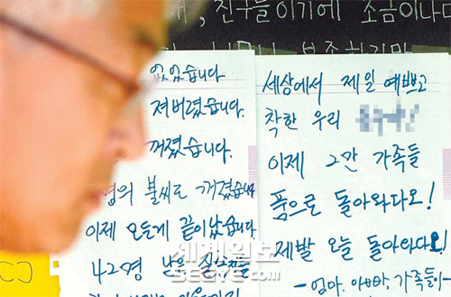 “꼭 껴안아도 따뜻해지지 않는 너의 마지막 모습이 떠오를 때마다 가슴이 찢어져. 아직도 차가운 바닷속에 있는 네 친구들의 고통은 상상조차 못하겠어. 너를 가슴에 묻은 엄마, 두 오빠, 그리고 이 아빠 모두 상처는 깊어가겠지만 그래도 힘을 내보려고 해. 그러니 그곳에서는 아픈 기억 모두 잊고 편히 쉬렴. 사랑하는 딸아! 17년 동안 우리 가족에게 소중한 추억을 안겨줘서 고마워. 가슴 찢어지도록 보고 싶다. 그리고 미안하다.”