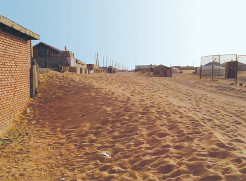 주민인 쇼라(65)씨가 이곳에 이사 온 15년 전에는 지금의 모습이 아니었다. 초원지대였던 이곳은 자갈이 많지만 살기에는 적당한 땅이었다. 쇼라씨는 이사 올 때부터 쌓이기 시작한 모래를 처음에는 열심히 외곽으로 퍼 날랐지만 이젠 ‘모래와의 싸움’을 포기한 상태다.