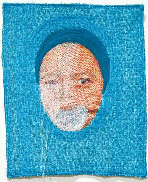 | 작가의 얼굴 사진에 재봉질한 윤지선 작품. |