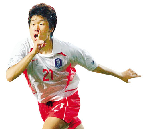 박지성은 포르투갈과의 2002년 한·일월드컵 D조 3차전에서 0-0으로 맞선 후반 25분 결승골을 터뜨렸다. 이영표가 올려준 크로스를 가슴으로 받은 후 왼발 강슛으로 포르투갈을 침몰시켰다. 그는 프랑스와의 2006년 독일월드컵 G조 2차전에서도 0-1로 패색이 짙던 후반 36분 조재진의 헤딩 패스를 발끝으로 밀어넣어 동점을 만들어냈다. 2010년 남아공 대회에서도 그리스와의 B조 1차전에서 골을 터뜨리며 3개 대회에서 연속 득점 기록을 세웠다.