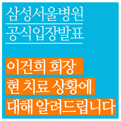 삼성서울병원 측은 16일 오후 공식 블로그에 ‘이건희 회장 현 치료 상황에 대해 알립니다’라는 글을 게재했다. 게시자는 글에서 “이건희 회장과 관련해 항간에 떠도는 위독설은 전혀 사실이 아니다”라며 “매우 안정된 상태에서 점차 호전되고 있다”고 설명했다. 이어 “의료진은 서두르지 않고 안전하고 완벽한 회복을 위해 치료를 계속 하고 있다”고 강조했다.