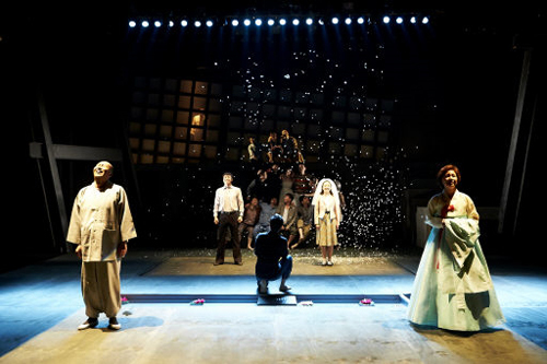 ‘명성황후’의 백미인 마지막 장면에서도 모든 인물들이 흰 옷을 입고 전진하며 ‘백성이여 일어나라’를 부르며 아직 풀지 못한 역사적인 상처를 상기시킨다.