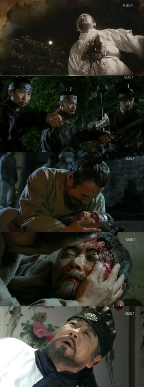 24일 방송된 KBS 1TV 대하사극 '정도전'(정현민 극본, 강병택 이재훈 연출) 39회에서는 낙마사고로 몸져 누운 이성계(유동근)가 가까스로 눈을 떴고, 이방원(안재모)과 정몽주(임호)가 하여가-단심가를 나누다가 결국 날을 세워 이방원이 정몽주에게 자객을 보내는 모습이 그려졌다.