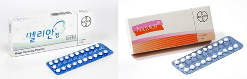 | 바이엘헬스케어 경구피임약 멜리안정(사진 좌)와 마이보라정(사진 우). |