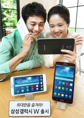 삼성전자는 ‘갤럭시W’(사진)를 SK텔레콤을 통해 3일 출시한다고 2일 밝혔다. 이 제품은 16대 9 화면비의 7인치 HD TFT 화면을 장착한 것이 특징이다. 큰 화면을 편리하게 쓸 수 있도록 제품 사용자환경을 가로로 설정할 수 있는 ‘가로모드’와 두 앱을 한 화면에 띄울 수 있는 분할화면, 멀티윈도 기능 등을 지원한다.