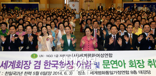 문난영 전임회장은 이임사에서 “문선명·한학자 총재님의 분신과 같은 여성연합에 몸담아 여성회원들과 함께 우리나라 통일부와 여성가족부 등에서 인정하고 유엔에서도 신뢰받는 NGO단체로 성장시켜 후임자에게 물려줄 수 있게 돼 기쁘다”며 “한 총재님께서 여성연합에 거는 눈물겨운 기대를 잊어서는 안 될 것”이라고 말했다. 문훈숙 유니버설문화재단 이사장은 한학자 총재를 대신해 문난영 회장에게 공로패를 수여했다.