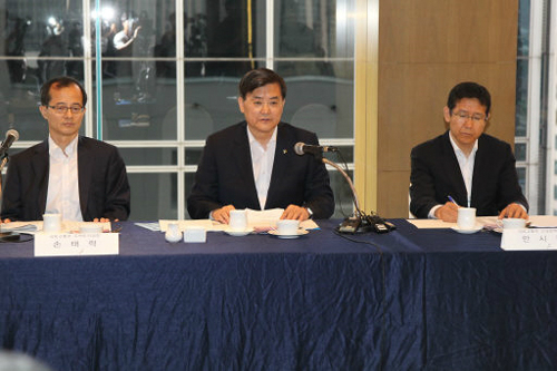 | 서승환(가운데) 국토교통부 장관이 5일 서울 중구 프라자호텔에서 열린 주택·건설협회 회원사 대표들과의 조찬 간담회에서 모두 발언을 하고 있다. 국토부 제공 |