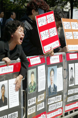 | 군대 보낸 자식을 잃은 유가족들이 서울 용산구 국방부 청사 앞에서 군 의문사 진상 규명을 촉구하는 집회를 갖고 있다. 세계일보 자료사진 |