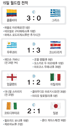 ‘죽음의 조’로 불리는 D조에서 최약체로 평가되는 코스타리카가 지난 대회 4강팀 우루과이를 3-1로 꺾은 것도 이변이다.