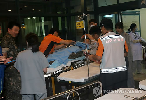 21일 오후 동부전선 최전방 GOP에서 초병이 동료 병사들에게 총기를 난사해 다친 병사들이 22일 자정을 넘은 시간 강릉의 한 병원으로 후송되고 있다.