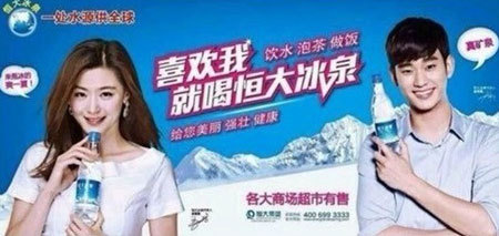 해외 온라인 커뮤니티 등에는 김수현과 전지현이 촬영한 중국의 생수브랜드 '헝다빙촨'의 광고 이미지가 게재됐다. 사진 속 김수현과 전지현은 문제가 된 '창바이산(장백산)' 표기가 적힌 생수를 들고 환하게 웃고 있다.