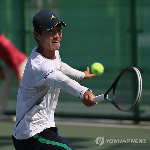 | 28일 경북 김천종합스포츠타운 테니스장에서 열린 국제테니스연맹(ITF) 제2차 김천 국제남자 퓨처스 준결승에서 우치다 가이치(일본)를 2-0(6-4 6-0)으로 꺾고 결승에 오른 김청의(안성시청) |