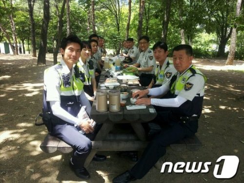 경찰들이 서로 인사를 나눈 뒤 '은밀하게' 꺼낸 건 수갑도, 권총도 아닌 각자 준비해온 도시락이었다.