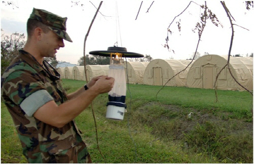 미군은 해외 주둔지를 선택할 때 예상 주둔지의 모기를 포집해 말라리아나 일본뇌염 등 전염성 질병의 감염 유무를 확인한다. 이는 모기가 옮기는 질병으로부터 자국 병사들을 보호하기 위함이다.