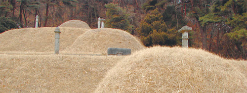 | 홍성민 3부자 묘역 맨 위가 영의정을 지낸 홍성민이고, 두번째가 그의 아들이자 가평군수인 홍서익의 묘이고, 맨 아래가 평안도 관찰사로 갔다가 병자호란을 맞아 청군과 싸우다 전사한 홍명고의 묘이다. |