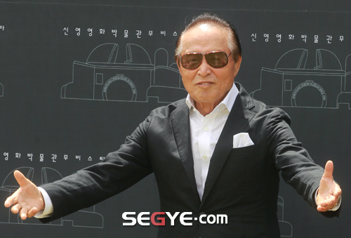 원로 영화배우인 신영균 한국영화인총연합회 명예회장이 25일 제주 서귀포시 남원읍 제주 신영 영화박물관에서 열린 '신영 영화박물관 뮤비스타' 리뉴얼 오픈 개관식에 참석해 포토타임을 갖고 있다.