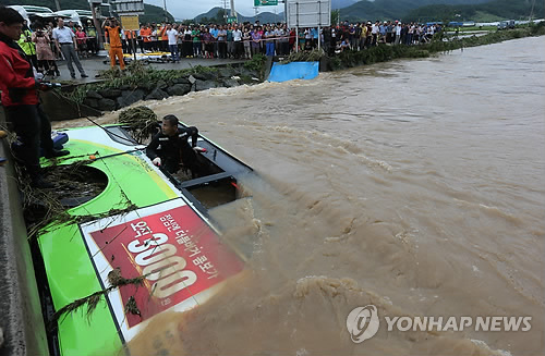 경찰은 해당 버스가 진동면 종합복지관과 진동파출소 쪽으로 가다가 폭우로 도로가 침수되자 하천변 농로로 우회하는 과정에서 사고를 당한 것으로 추정했다.