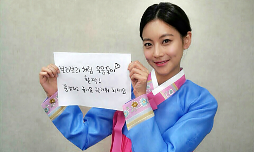 MBC 주말 드라마 ‘왔다! 장보리’의 주인공 장보리 역으로 열연하고 있는 오연서는 7일 파란 저고리와 꽃무늬 모양이 인상적인 한복을 입고 "'보리'처럼 웃음꽃이 활짝! 풍성하고 즐거운 한가위 되세요"라는 짧지만 따뜻한 마음이 담겨있는 추석 메시지를 전했다.