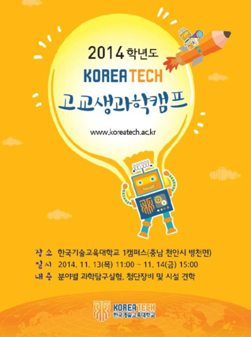 | 사진=한국기술교육대 '2014년 하반기 전국 고교생 과학캠프' 포스터 |